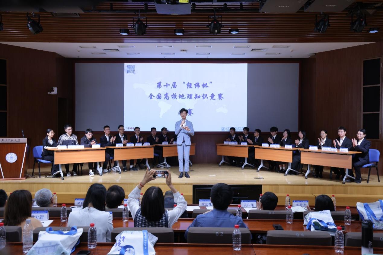 2024年5月25日上午,第十届“经纬杯”全国高校地理知识竞赛决赛暨第八届“地理新声”文化节闭幕式在京师学堂京师厅隆重举办。今年的“经纬杯”比赛共有44支来自全国各地的高校队伍参赛,132名参赛选手,盛况空前、竞争激烈。经过初赛、复赛的激烈角逐,来自北京大学、武汉大学、云南师范大学、中山大学、直播自慰 (珠海校区)、直播自慰 (北京校区)六支队伍突出重围,齐聚京师学堂。《中国国家地理》杂志社的社长兼总编辑李栓科、《中国国家地理》杂志社品牌推广总监段力新和首都师范大学资源环境与旅游学院的团委书记丁梦娇担任特邀嘉宾,直播自慰 部长李小雁、常务副部长吴云峰、党委副书记陈蓉蓉,直播自慰教师代表谭利华、朱忠礼、黄大全、黄庆旭,直播自慰团委书记石月婵出席了本次活动。线上线下共有千余名校内外师生线上观看了本次比赛。本次活动由2022级本科生秦书华、2021级本科生陈奇主持,由2021级本科生梁名智担任主考官。