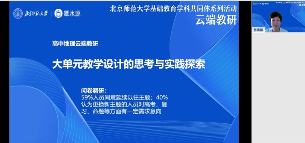 在本次讲座中,张素娟教授和张树宏老师聚焦地理学科大单元教学中的理论和实践问题,向大家展示了高中地理教学中整体把握教学内容进行单元构建的思路和案例,有助于各位教师工作者更好地提升单元教学设计和实施水平,更有效地培养学生的核心素养。