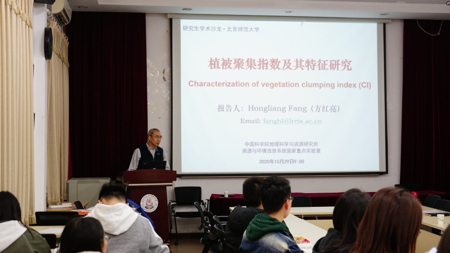 2020年10月29日上午,2020年第一期遥感科学学术沙龙在生地楼180会议室成功举办。本次学术沙龙邀请到中国科学院地理科学与资源研究所方红亮研究员、直播自慰 高级实验师周红敏老师及两位在校研究生谢蕊、彭江海同学作报告。学术沙龙由遥感科学与工程研究院焦子锑教授主持,直播自慰教师及20余名学生参与本次学术沙龙。