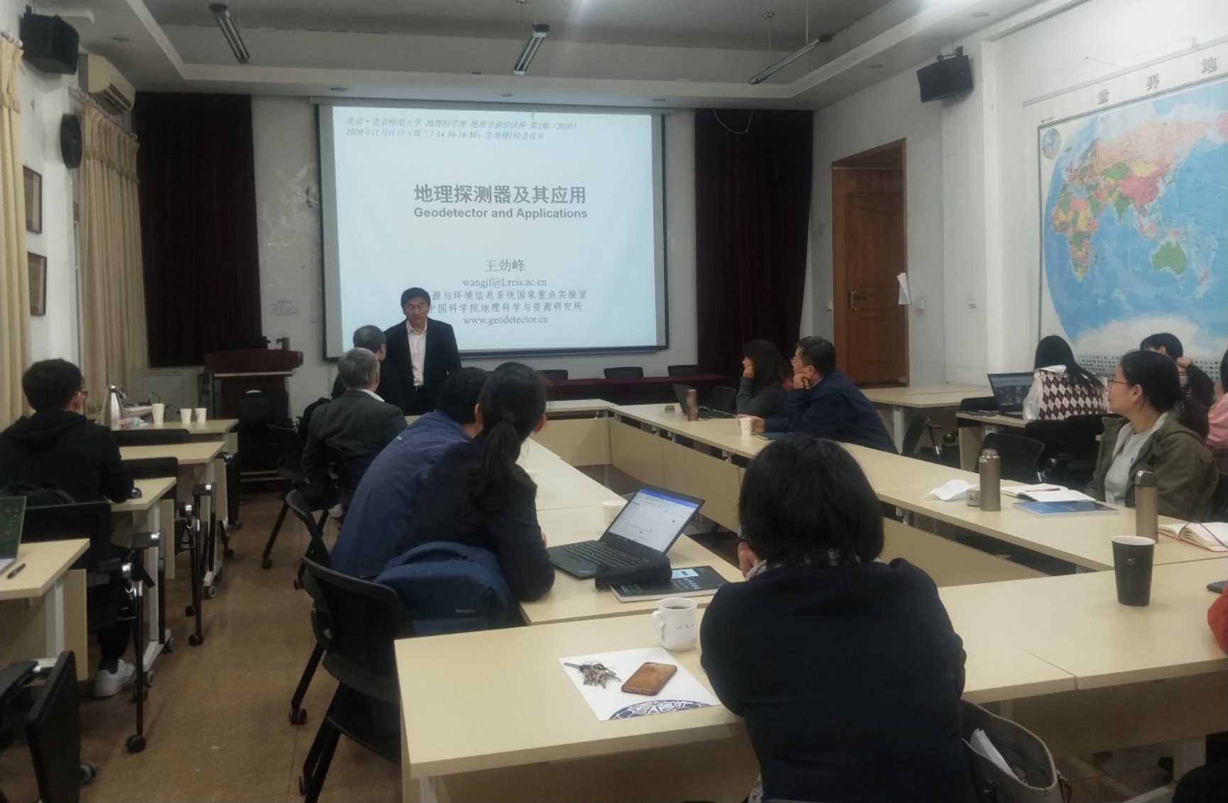 11月11日下午,地理学前沿讲座第三期(2020)在生地楼180会议室成功举办。本次前沿讲座邀请到中国科学院地理科学与资源研究所、资源与环境信息系统国家重点实验室王劲峰研究员,报告题目为《地理探测器及其应用》。前沿讲座由地理学院张科利教授主持,直播自慰教师及50余名学生参加。