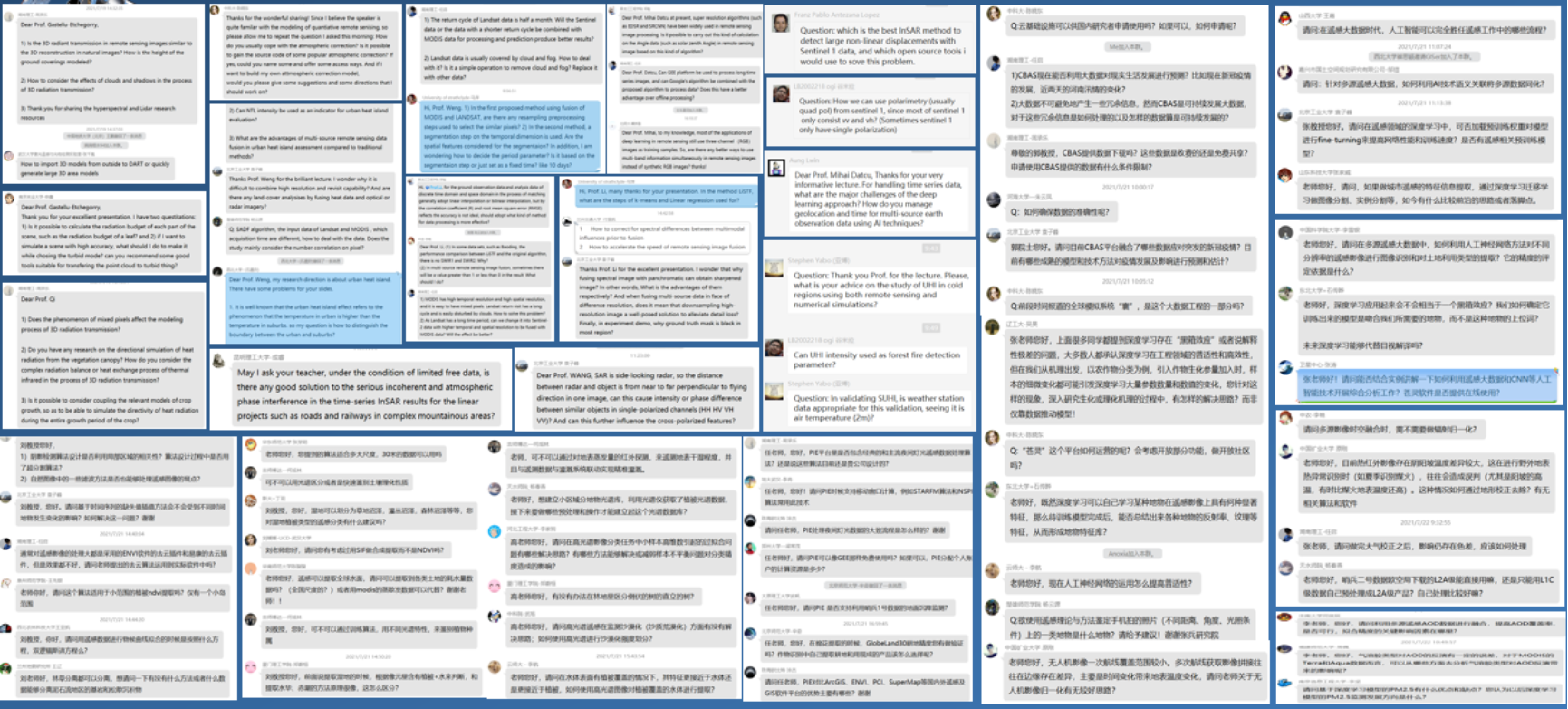 7月19-20日的英文暑期学校是我校第六次举办IEEE GRSS暑期学校,主题是“Modeling in Microwave and Optical Remote Sensing”。中国科学院空天信息创新研究院Qinhuo Liu、密歇根大学Leung Tsang、图卢兹大学Jean-Philippe Gastellu-Etchegorry、中国林业大学Jianbo Qi、直播自慰 Donghui Xie、香港理工大学Qihao Weng、东卡罗来纳州立大学Yong Wang、中山大学Jun Li、德国宇航中心Mihai Datcu、加泰罗尼亚理工大学Carlos Lopez Martinez等国内外知名专家在线授课。本届设置10场英文专题报告,内容涵盖光学遥感模型、微波遥感模型、DART模型、LESS模型、遥感机理模型平台、地表城市热岛遥感、多时相SAR观测和InSAR技术、多模态遥感数据融合、人工智能观测、SAR偏振测量等,使学员们学习和了解当前国际遥感领域的前沿研究进展。