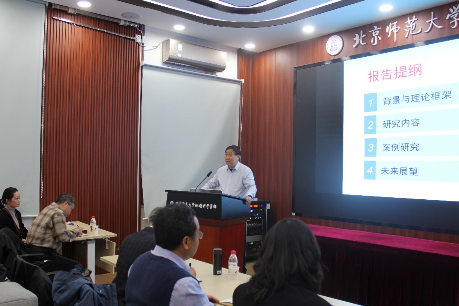 傅伯杰院士从概念提出的背景与理论框架展开报告,指出人地系统耦合研究是可持续性研究的前沿,对其模拟是地球系统科学的发展方向;并从依托项目、框架结构、学术观点等方面介绍了现行的几种社会-生态系统的理论框架。其次,傅院士向在座各位介绍了社会-生态系统的六大研究内容:社会-生态系统结构、社会生态系统的动态变化、弹性、脆弱性、尺度效应与区域联系和社会生态系统管理。之后,傅院士结合“近千年来黄土高原社会-生态系统演变”、“历史时期黄河输沙量的稳态转换”和“社会-洪水互馈模型的改进与评估”三个研究案例,向与会师生展示现阶段的社会-生态系统研究工作。最后,傅院士指出社会-生态系统研究亟待解决的主要科学问题,以及区域社会-生态系统研究的主要方向。