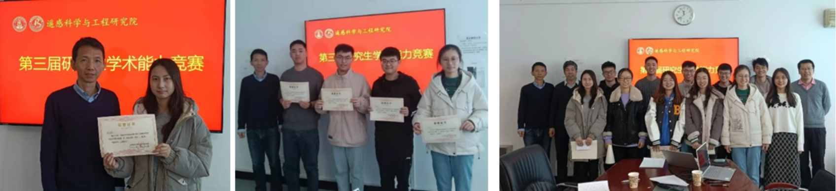 经过紧张激烈的竞赛角逐,评委根据参赛学生的PPT制作水平、演讲表现力、科研技术创新性、研究方法、思维与反应能力等从多个方面进行考察,经综合打分,每组各评选出获奖选手一等奖1名、二等奖2名、三等奖4名。评委老师们为获奖选手颁发了奖状并合影留念。同时,本次大赛为鼓励2021级硕士新生踊跃参加,对2021级硕士新生选手颁发了鼓励奖,以激励更多的同学积极参与学术活动。