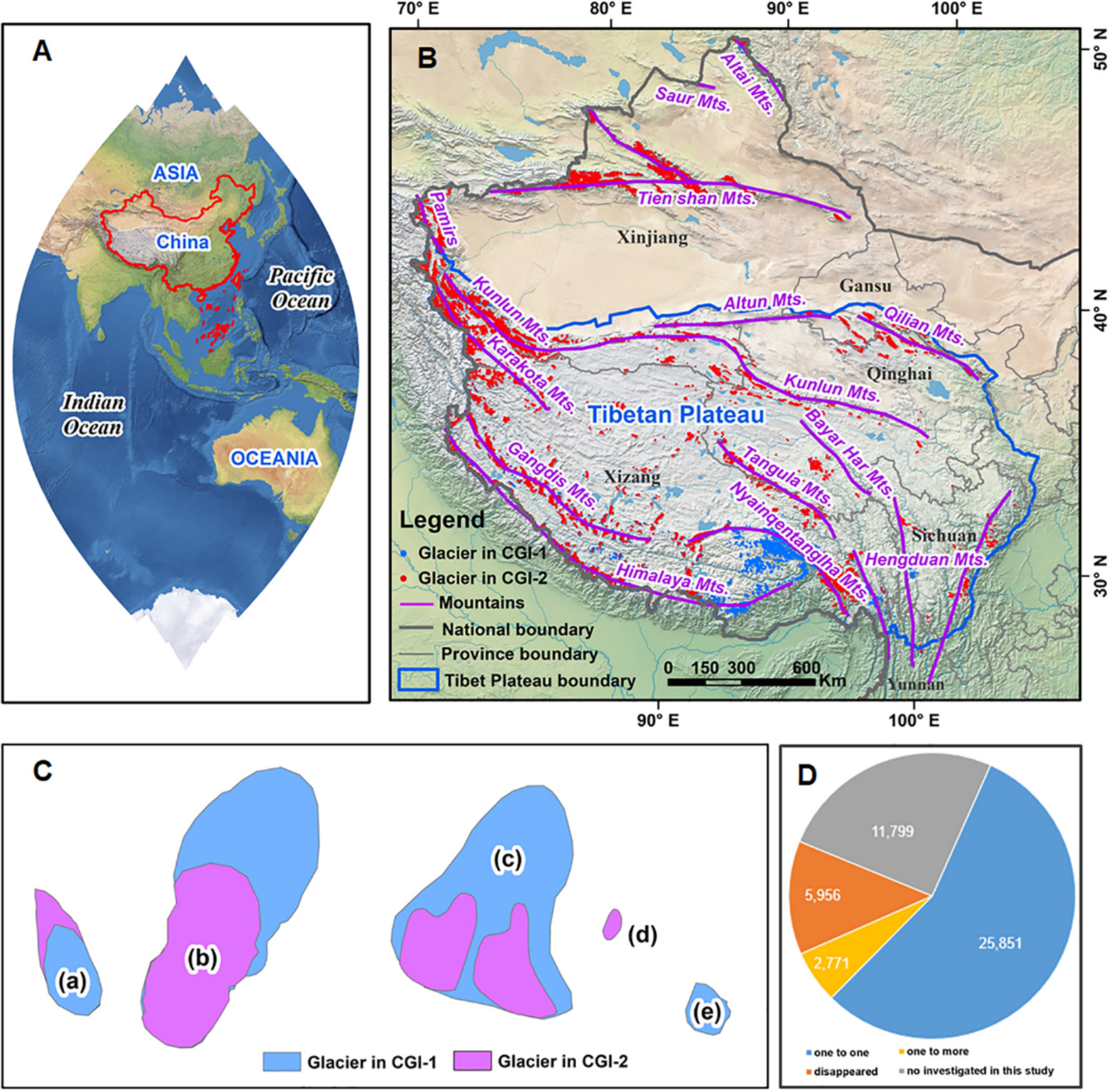 图1 中国冰川分布及其演化