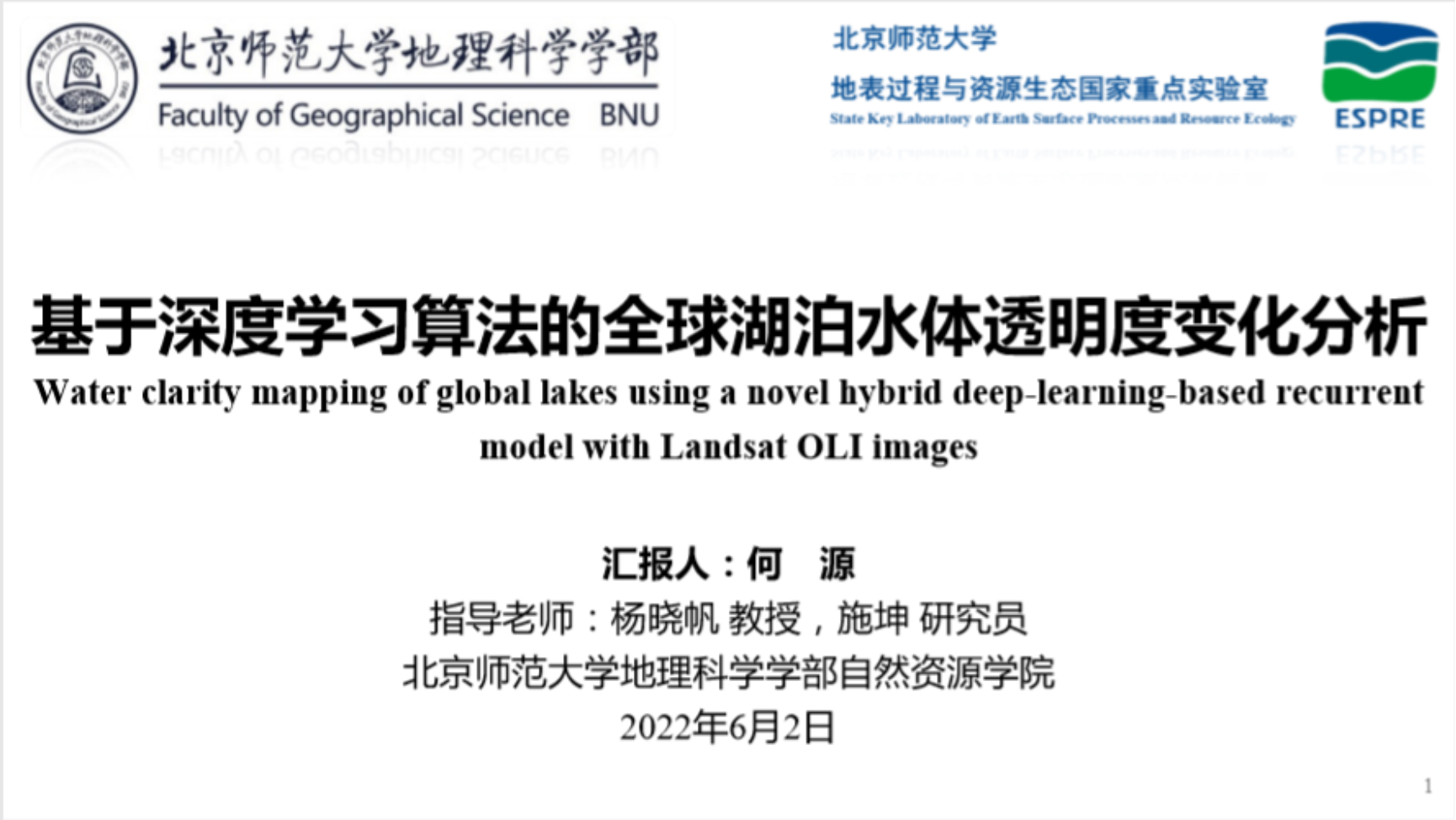 何源同学汇报的题目为“基于深度学习算法的全球湖泊水体透明度变化分析”。通过构建新型深度学习模型,克服了传统算法的缺陷,有效融合了观测数据与遥感产品。然后基于Landsat8地表反射率影像估算全球尺度的湖泊水体透明度数据集,分析了全球16475个湖泊在2014–2020年间的湖泊水体透明度(SDD)时空变化特征,并建立指标体系,分析湖泊特征与人类活动对全球湖泊透明度的影响。研究的主要结论为:(1)该研究建立的深度门控循环神经网络(DGRN)模型可准确、高效的预测全球湖泊的水体透明度;(2)基于Landsat8地表反射率影像和DGRN模型,计算了全球湖泊透明度空间分布,结果表现出明显的纬度地带性:(3)从2014至2020年,全球湖泊水体透明度表现出下降趋势,243个湖泊SDD显著上升;392个湖泊SDD显著下降;(4)水体透明度与湖泊特征紧密相关,湖泊平均深度对水体透明度的贡献最大;在新冠疫情期间,居家隔离政策的实施导致人类活动减少,致使全球湖泊水体透明度表现出明显的正向变化。基于上述的研究结论,何源同学提出了以下几点展望:针对湖泊光学过程的理解仍然需要提高;全球湖泊无冰期仍需要更准确的评估;由于湖底反射的影响,高质量的遥感影像仍然缺乏。汇报完毕何源同学与刘志锋老师、参会同学展开了热烈的讨论。