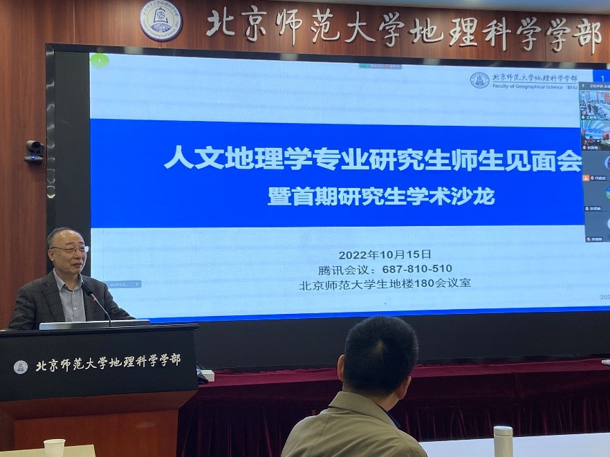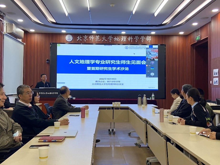 为促进人文地理学专业的师生交流,倡导主动思考、互相学习、激烈思辨的学术讨论氛围,增强专业凝聚力和归属感,2022年10月15日上午,人文地理学专业师生见面会暨首期研究生学术沙龙在生地楼180会议室通过线上线下方式顺利举办。会议邀请到直播自慰 部长宋长青教授和人文地理学专业17名教师参加,现场共有39名硕博研究生,此外还有部分师生在线上参加。会议由人文地理学专业负责人朱华晟教授、2021级人文地理学硕士生陈天麒同学共同主持。