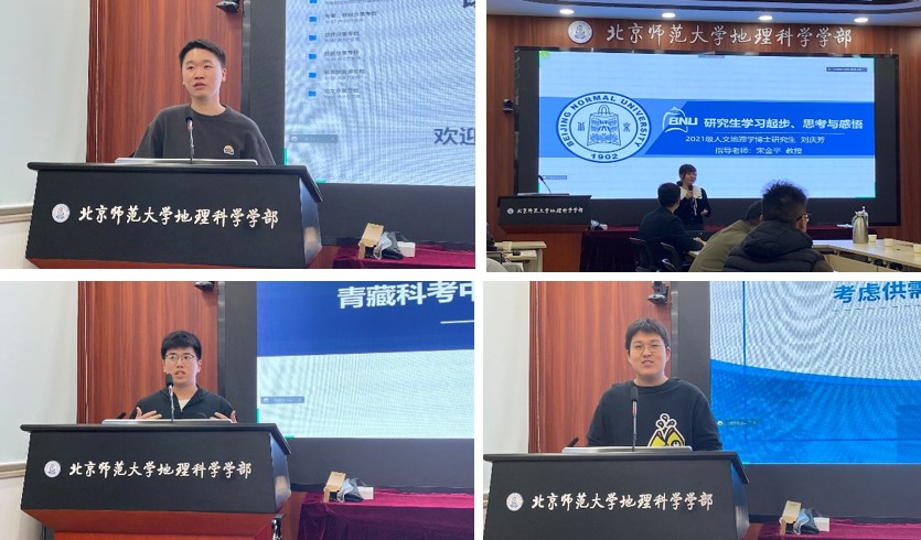 后半场的学术沙龙环节,三位研究生依次分享了学习经验与研究成果。2021级博士生刘庆芳以“研究生学习起步、思考与感悟”为题,介绍了自己在文献阅读、论文写作、野外实践中发现并研究人文地理学问题的经验,引起了在场师生的共鸣和思考;2021级硕士生李东欣以青藏科考的实践经历为例,畅谈了自己如何从日常政治地理切入,思考研究问题的学习体会;2021级硕士生刘秉鑫汇报了自己的近期研究成果——“考虑供需比的出租车可达性评价研究”。