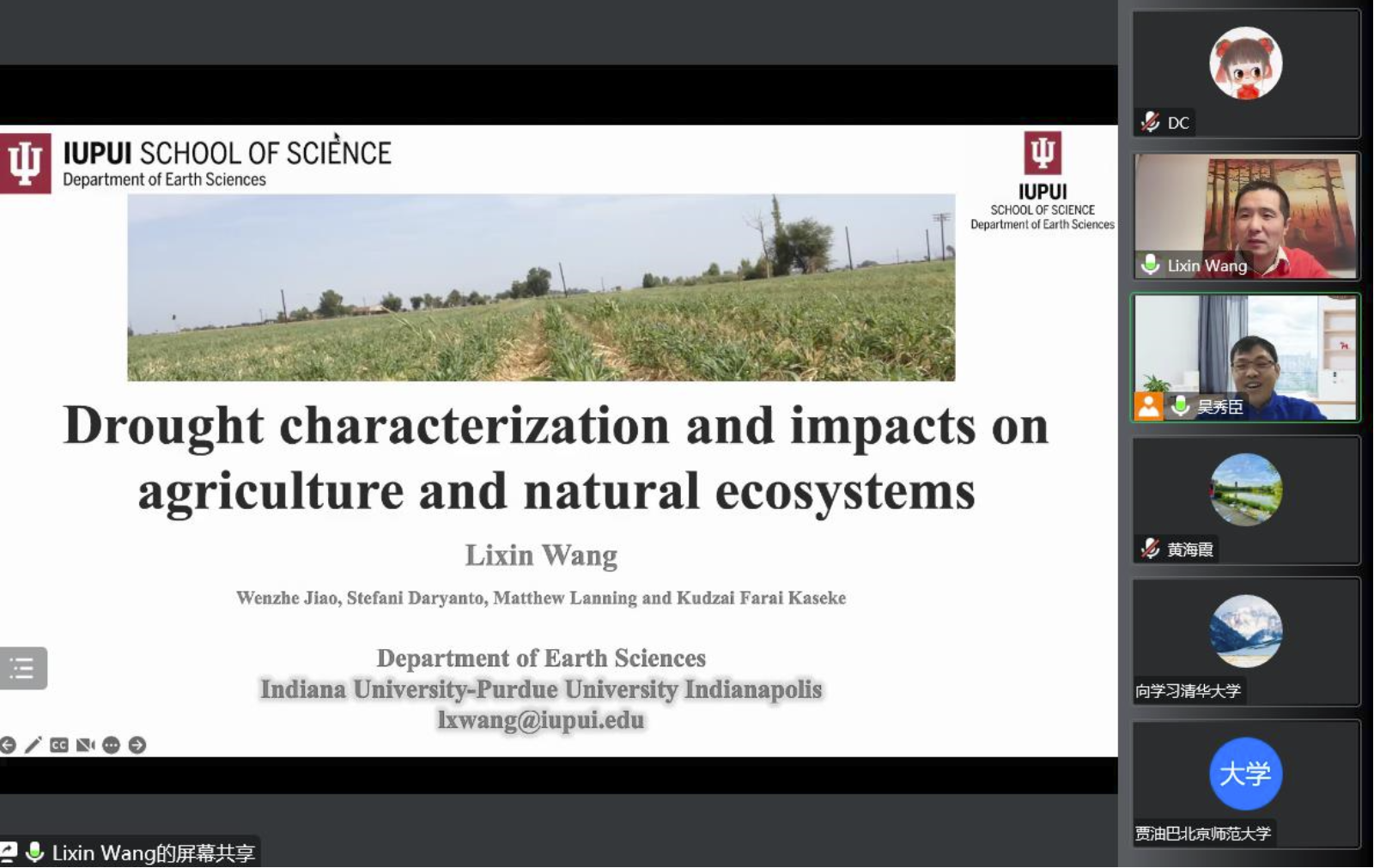 2022年10月19日上午,资源科学前沿系列讲座第九期——“Drought characterization and impacts on agriculture and natural ecosystems”成功举办。讲座邀请 Indiana University-Purdue University Indianapolis 大学地球科学系教授王立新为主讲嘉宾,由直播自慰 自然资源学院吴秀臣教授主持,来自直播自慰 、北京大学、清华大学、中科院等单位270余名师生参会。讲座以线上会议形式进行。
