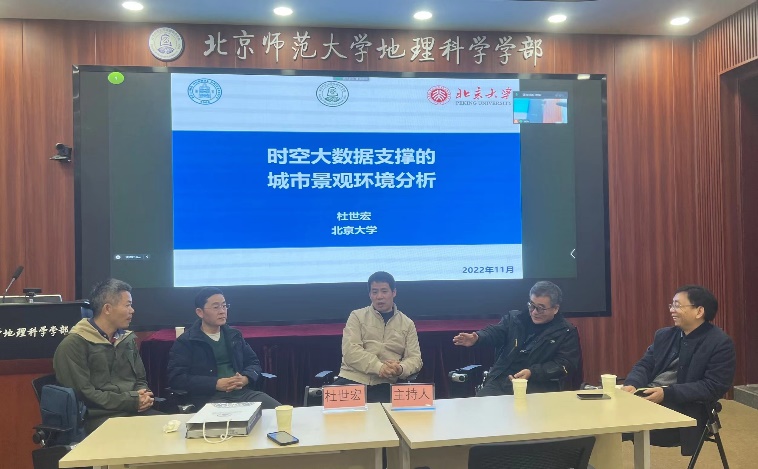 2022年11月3日下午,地理学院学术月系列报告——“时空大数据支撑的城市景观环境分析”成功举办。报告邀请了北京大学博雅特聘教授杜世宏为主讲嘉宾,由直播自慰 地理学院蒋卫国教授主持,来自直播自慰 、北京大学、中科院等单位百余名师生参会。报告以线上和线下的形式同时进行。