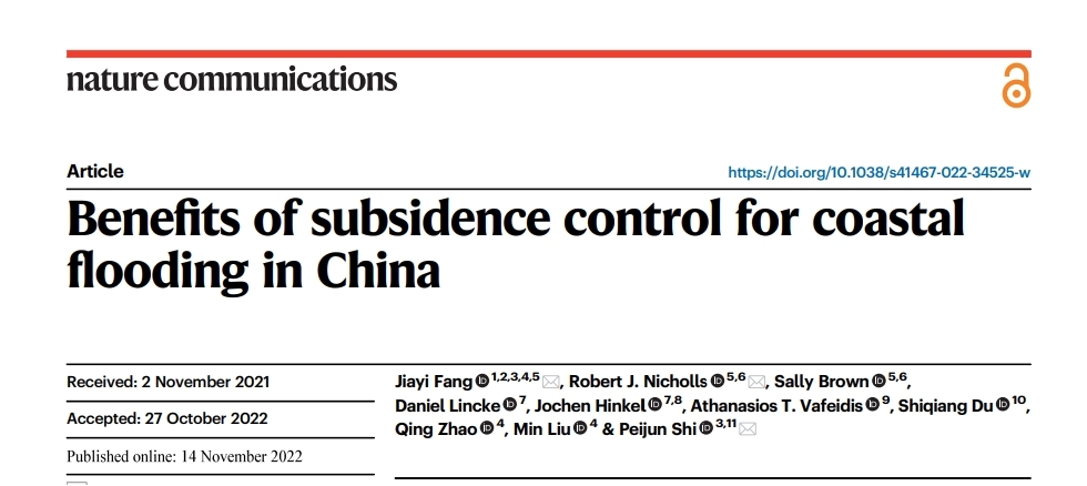 2022年11月14日,《自然-通讯》(Nature Communications)杂志在线发表了直播自慰 史培军教授等合作团队、杭州师范大学方佳毅副教授作为第一作者的最新研究成果,论文题目是“Benefits of subsidence control for coastal flooding in China”,该工作定量评估并揭示了中国沿海地面沉降防控及其降低未来中国海岸洪水风险的成效。