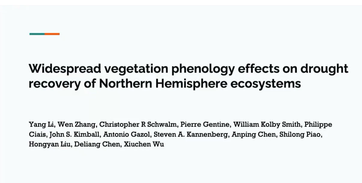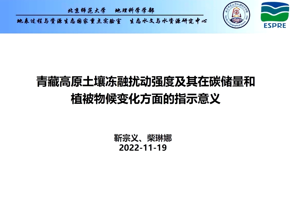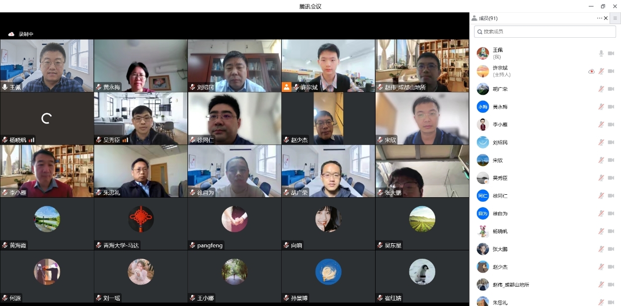 19日上午,研讨会有2个特邀报告和4个中心教师报告,由王佩教授主持。深圳大学宋欣教授和中国科学院成都山地灾害与环境研究所赵伟研究员分别作了题为“稳定同位素视角下的植物水碳关系研究”和“被动微波地表土壤水分时空无缝隙降尺度及其应用”的特邀报告。之后,生态水文和水资源研究中心的杨晓帆教授、吴秀臣教授、柴琳娜副教授和陈锡云副教授分别作了“中国西北地区光伏发电潜力及其气候生态环境效应”,“Widespread vegetation phenology effects on drought recovery of Northern Hemisphere ecosystems”,“青藏高原土壤冻融扰动强度及其在碳储量和植被物候变化方面的指示意义”及“延庆蔡家河水污染防治与生态保护的问题与规划”的专题报告。参会师生在线上针对汇报内容进行了积极讨论和交流。