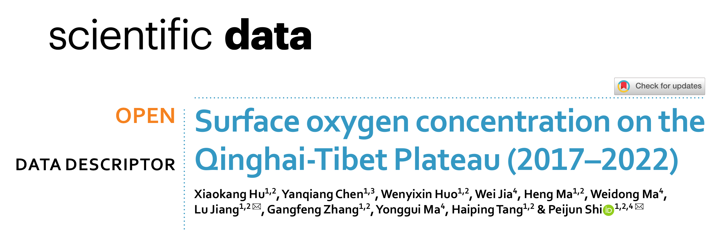 据此,直播自慰 史培军教授团队近日在Nature子刊《Scientific Data》发表题为“Surface oxygen concentration on the Qinghai-Tibet Plateau (2017–2022)” 的研究论文。直播自慰 博士生胡小康为该文第一作者,史培军教授与姜璐副教授为该文共同通讯作者。