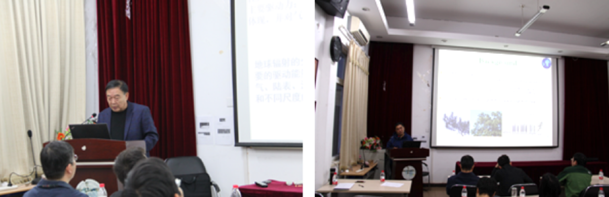 随后,遥感院院长、遥感科学国家重点实验室主任施建成作了题为“青藏高原能量平衡研究”的主题报告。报告从地球辐射能量平衡研究的重要性、青藏高原研究面临的挑战、青藏高原冰川变化的特征和局部对流云生成过程对青藏区域的影响等几个方面给大家介绍了目前青藏高原地表能量时空分布特征遥感研究中的关键科学问题。针对这些科学问题,分别从地表净辐射遥感的研究、复杂地形的短波辐射遥感研究、长波辐射的研究好和多波段微波地表温度反演以及微波大气水汽反演方法等几个方面进行了讲解。遥感院院长助理焦子锑老师作了题为“MODIS全球植被聚集指数-算法与产品”的主题报告。报告针对目前基于MODIS数据反演聚集指数的算法框架中反演聚集指数的三个关键问题,提出了相应的解决方案,并利用其改进的方法生产了全球的聚集指数产品,同时,就产品的质量问题,和其它聚集指数产品的差别等进行了介绍。三名博士研究生孟翔晨、崔磊、战川分别作了题为“单通道地表温度反演算法研究进展”、“利用热点校正的MODIS BRDF数据估算森林冠层高度(Estimating forest canopy height using MODIS BRDF data with emphasis on the revised-hotspot reflectance)” 和“青藏高原显热变化对东亚季风的影响以及不同大气顶反照率产品的比较”的报告。