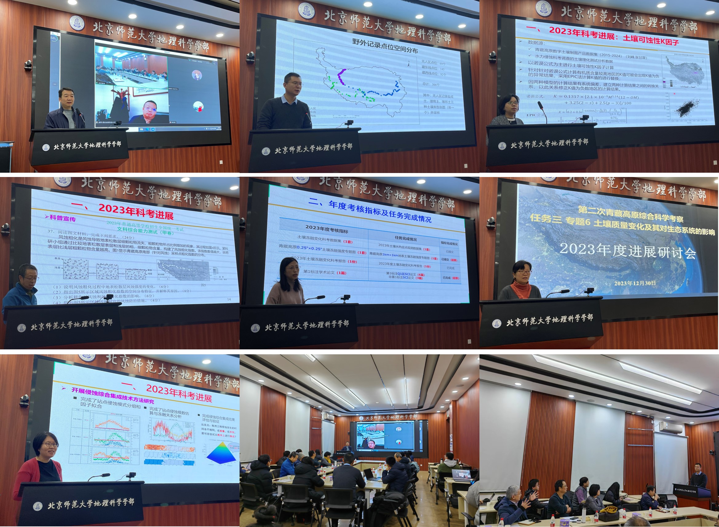 中国科学院南京土壤研究所宋效东研究员介绍了子专题1进展,2023年在完成土纲级别制图的基础上,开展了“藏东线”和“藏西线”的野外考察,评估了青藏高原土壤类型图的绘制精度。同时,介绍了在羌塘高原无人区采样中新发现的“火山渣寒冻正常新成土”“草毡红色正常新成土”以及5000米以上的潜育土,此新发现将有助于填补青藏高原现存土壤类型图的空白。2024年计划完成青藏高原土壤类型图土纲级别的完全修正,亚类级别的土壤类型制图以及土壤图不确定性分析报告。直播自慰 符素华教授介绍了子专题2土壤水蚀考察和径流小区数据观测情况、青藏高原土壤侵蚀现状及其时空变化、水蚀对土壤肥力和土壤质地的影响;2024年,将完成土壤水蚀图集的制作和提交,该研究成果将为青藏高原水土资源保持提供数据支撑。浙江师范大学伍永秋教授介绍了子专题3进展,修正了现存土壤风蚀模型,绘制了2000-2020年青藏高原土壤风蚀强度图,评估了近40年青藏高原风蚀区以及典型风蚀区柴达木盆地的土壤质量变化,其研究结果可为土壤侵蚀与防治咨询报告提供资料支撑。直播自慰 柴琳娜副教授介绍了子专题4在“样点-景观-区域”多个尺度取得的进展,揭示了土壤水热变化与生态系统碳源/汇变化之间的潜在联系,评估了短期季节冻融以及冻融地貌对高寒草地土壤质量的影响,分析了青藏高原冻融强度的时空规律,并预测了未来气候情景下青藏高原全区热侵蚀沟对土壤有机碳储量的影响。中国科学院生态环境研究中心张丽梅研究员介绍了子专题5进展,完成了青藏高原不同土地利用类型、自然区下的土壤养分特征分析和土壤质量的评估,揭示了青藏高原土壤真菌群落沿海拔分布格局以及草地原生生物多样性分布特征。直播自慰 黄永梅教授介绍了子专题6进展,开展了侵蚀(水蚀、风蚀、冻融)综合集成技术方法研究,构建了青藏高原土壤质量评价最小数据集,评估了近40年来青藏高原各生态系统土壤质量变化格局,并建立了评价青藏高原生态系统质量的指标体系。