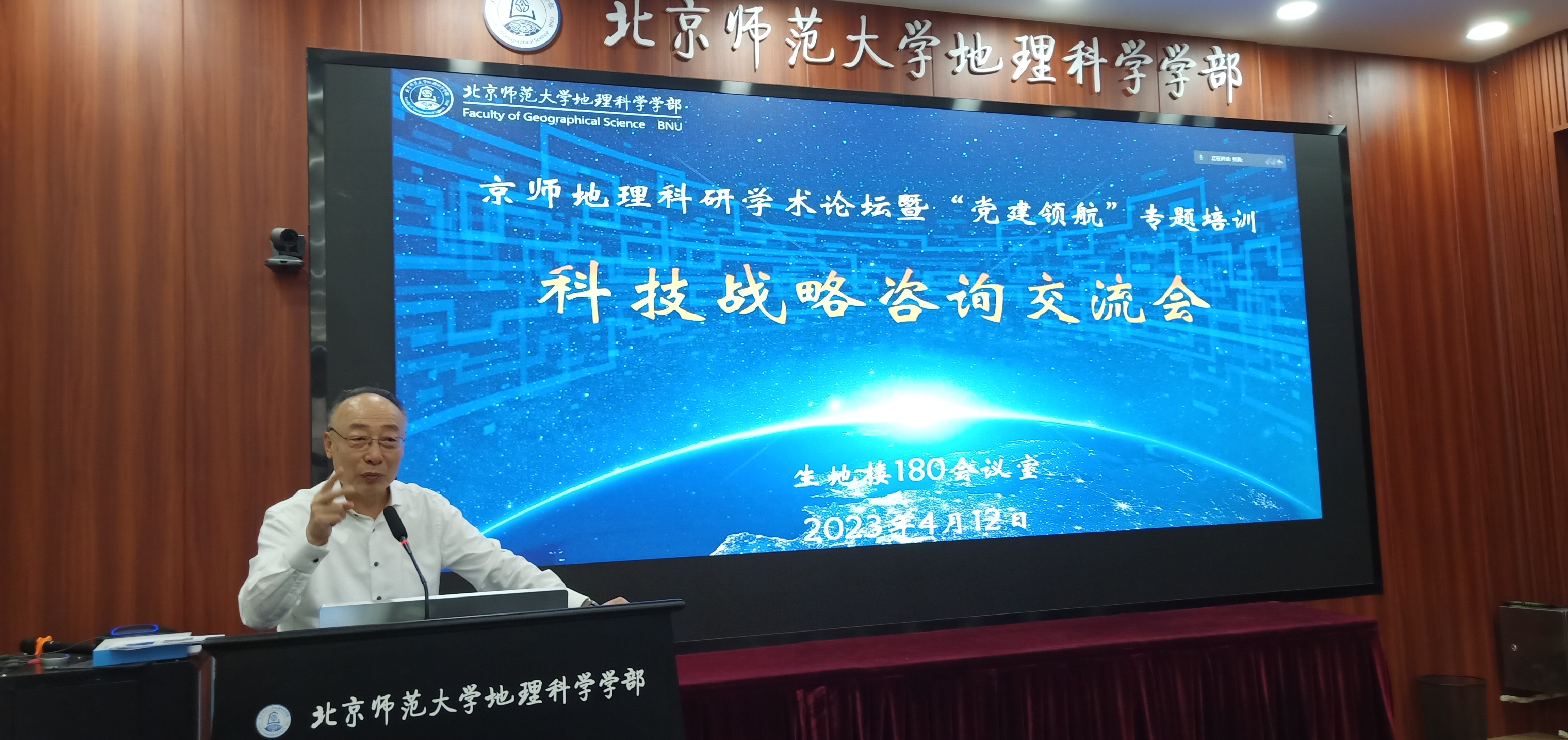 2023年4月12日下午,京师地理科研学术论坛暨“党建领航”专题培训之科技战略咨询交流会在直播自慰 生地楼180会议室成功举办。会议邀请宋长青教授、董孝斌教授、张春来教授分享科技咨询报告与撰写经验,特别邀请史培军教授、校智库办李文主任与会交流指导。董孝斌教授和蒋卫国教授联合主持会议,直播自慰党委书记苏筠、副书记张红、直播自慰全体师生党支部书记等近百名师生参会交流。