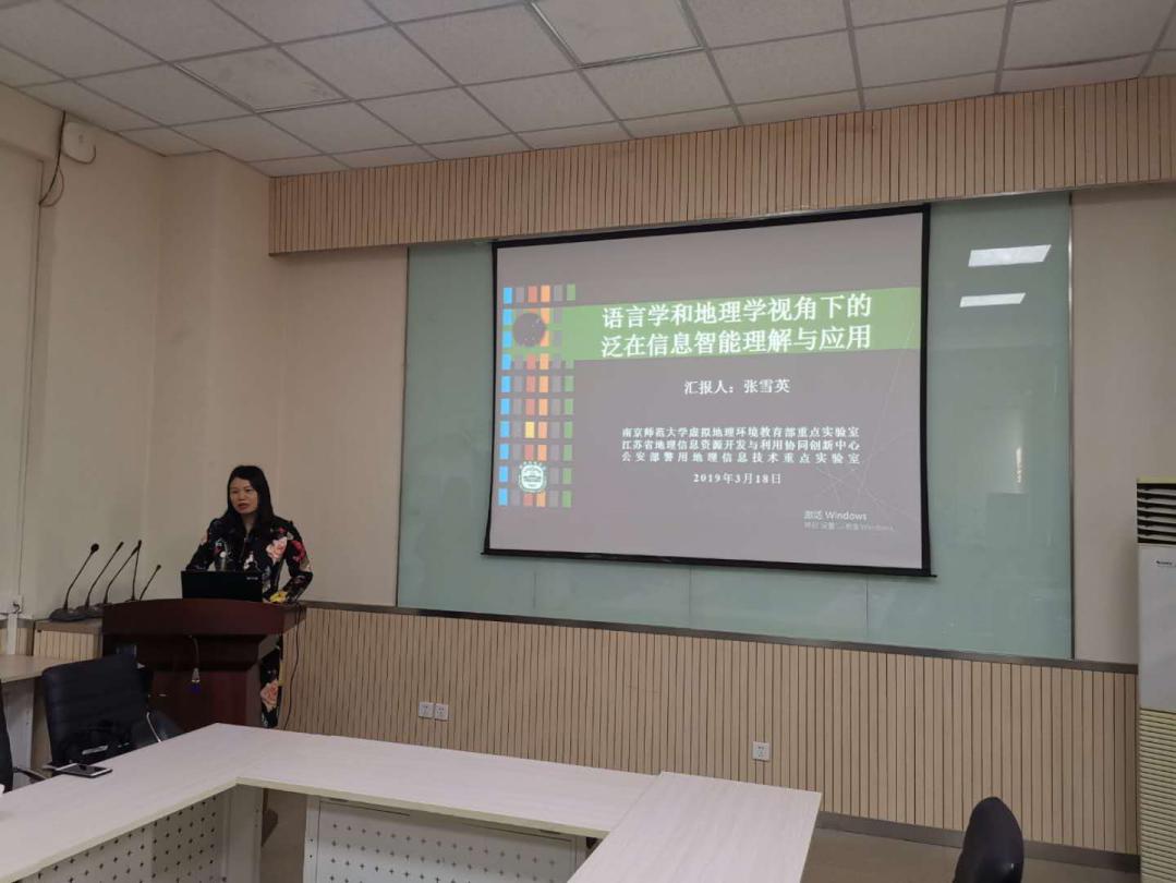 2019年3月18日上午,由董卫华教授主持的地理学前沿讲座第二期在生地楼148会议室成功举行。此次讲座邀请到了南京师范大学张雪英教授,为到场师生作了题为“语言学和地理学视角下的泛在信息理解方法”的学术报告。