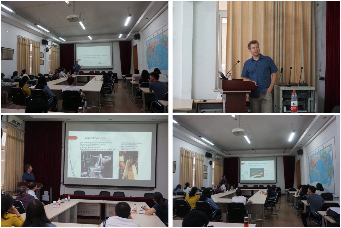 2019年5月17日14:00—16:00,由张卓栋副教授主持的地理学前沿讲座在生地楼180会议室举行,邀请了德国莱布尼兹农业景观研究中心Carsten Hoffmann博士作了题为“Increase the visibility of your research: FAIR access to soil research data”的学术报告。来自地理学院、地表过程与资源生态国家重点实验室等单位的近30名师生参加了本次讲座。