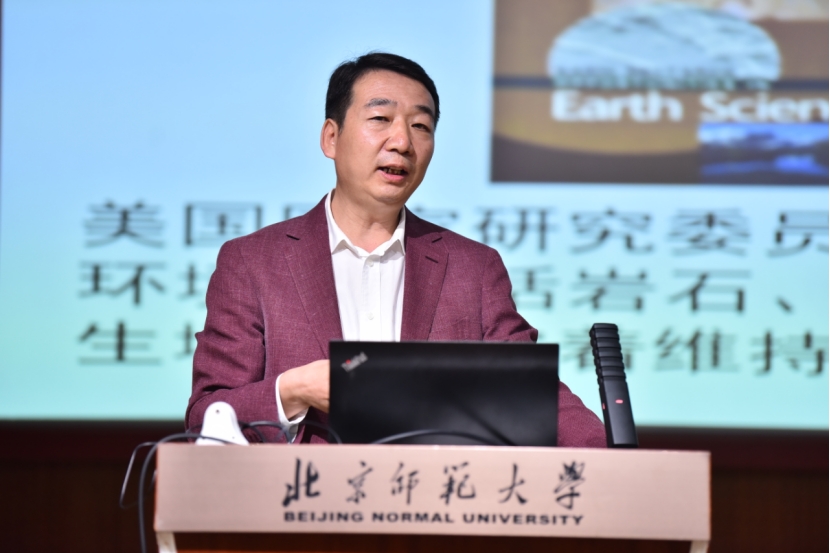 李小雁教授进行了主题为“地理科学前沿研究领域:地球关键带与可持续发展”的专题讲座。他从地理学学科交叉的重要性出发,层层渐进地阐述了地理科学学科的任务、地球关键带科学特点与前沿问题以及地理学与地球关键带科学提升可持续发展研究展望。分析了地理学研究特点和研究模式演变特征,梳理了国际地球关键带研究的独特性和面临的挑战,指出地球关键带是21世纪地球科学的重要研究领域。李小雁教授借助生动的比喻以及青海湖流域关键带观测研究案例,深入浅出地引导师生认识地理科学和地球关键带交叉研究的重要性。最后,李小雁教授强调了地理学与地球关键带科学在实现联合国可持续发展目标中的重要作用,展望了第三代关键带观测站研究中人地耦合研究,推动地理学的高质量发展。
