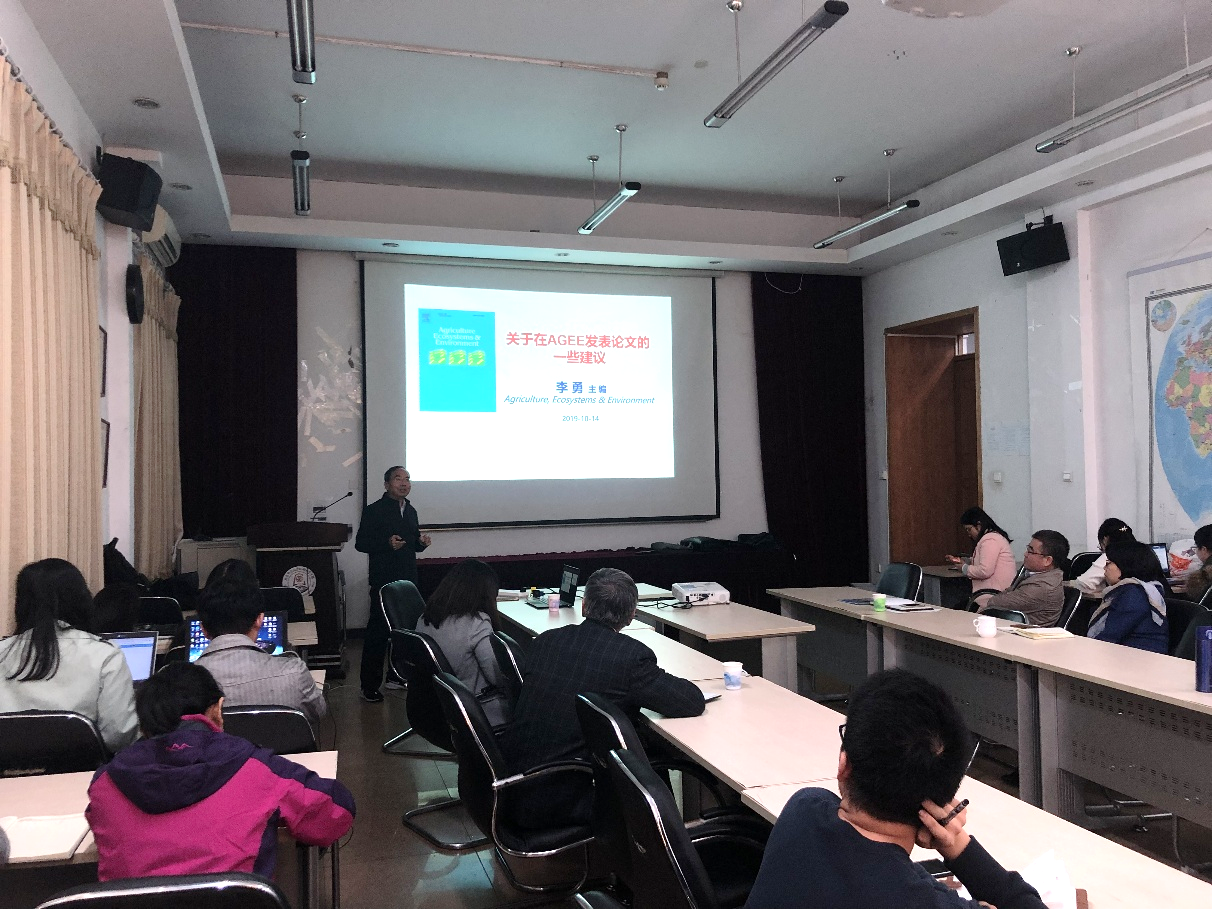 20191014日下午,地理学前沿讲座第16期在生地楼180会议室成功举行。受地理学院张科利、刘宝元和张光辉教授邀请,爱思唯尔出版集体出版人Marianna Taffi博士与Agriculture Ecosystems and Environment(AGEE)主编李勇教授分别作了题为“Getting your paper published: what you need to know as an author”和“关于在AGEE发表论文的一些建议”的报告。张科利教授主持了讲座,刘宝元教授,符素华教授等50等多名来自地理学院、地表过程与资源生态国家重点实验室等单位的师生参加了本次讲座。