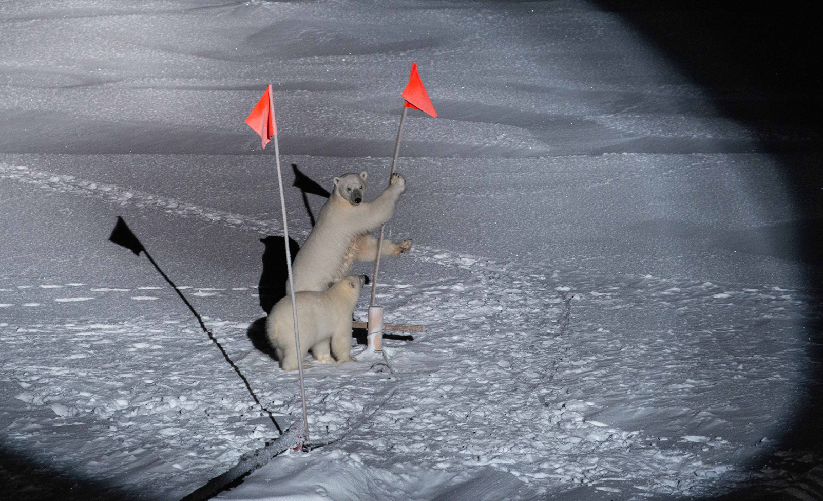 图3:北极熊靠近“极星号“工作现场(原图来自//follow.mosaic-expedition.org/)
