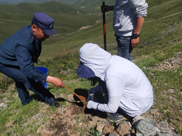 “城镇化流域土壤和水质考察”小队重点调查了湟水流域矿区土壤、河水与河流底泥以及林地土壤重金属污染情况。针对主要矿区,结合实际调查,选取实际存在并具有代表性的矿区,以矿所在点为中心点,向矿区三个方向分别设置样线,增设样点。在矿区中心位置和间隔矿区中心100m、200m、300m、400m、500m处,各采集1份表层土壤样品,共采集到矿区土壤样品59份。针对前期分析中SWAT-HM模型的拟合情况,筛选水利部水质水文检测断面中的关键断面,在关键断面进行水质样品和底泥样品取样,共采集到湟水河水样15份、底泥样品14份。筛选出前期林地调查数据中的异常值,根据采样点经纬度信息,到达原先采样点,复查采样点环境等相关信息,记录样点环境信息,判断数据异常原因,并在样点周围选取合适的地区进行重新采样,共采集到湟水流域林地土壤样品8份。
