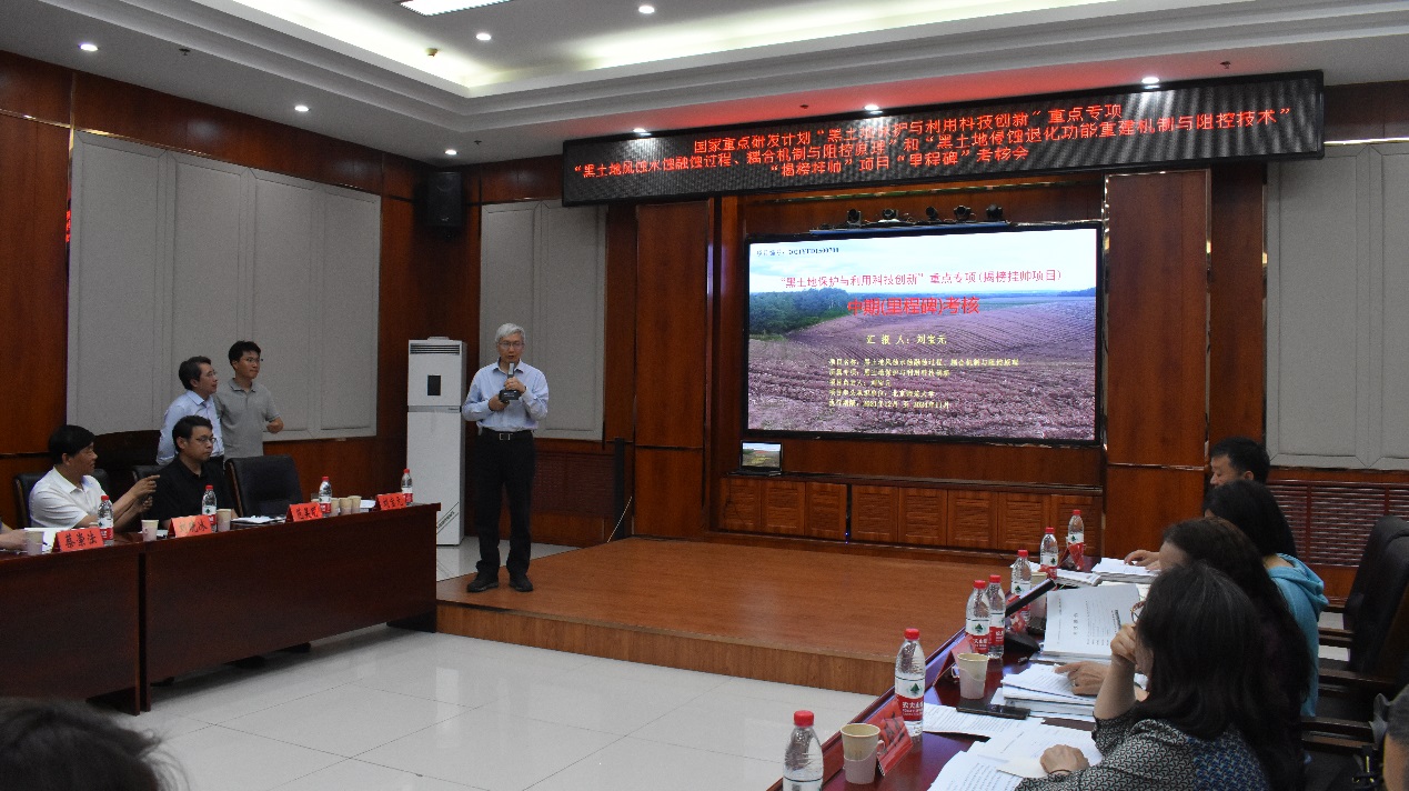 “揭榜挂帅”项目是“十四五”科技部首次提出的创新型项目管理模式,是为了研究复杂而无成熟方法解决的科学与技术问题而设,采用了不限年龄、不限单位注册时间、立下“军令状”的招标方式,旨在为最终用户提供可应用的科技成果。中期按“里程碑”形式考核,除接受项目管理机构和专家组的考核外,特别邀请了最终用户参加。考核组在北京师范大学“黑龙江九三土壤侵蚀教育部野外科学观测研究站(以下简称:九三土壤侵蚀试验站)”进行现场考察后,听取了项目负责人刘宝元教授的研究成果汇报。