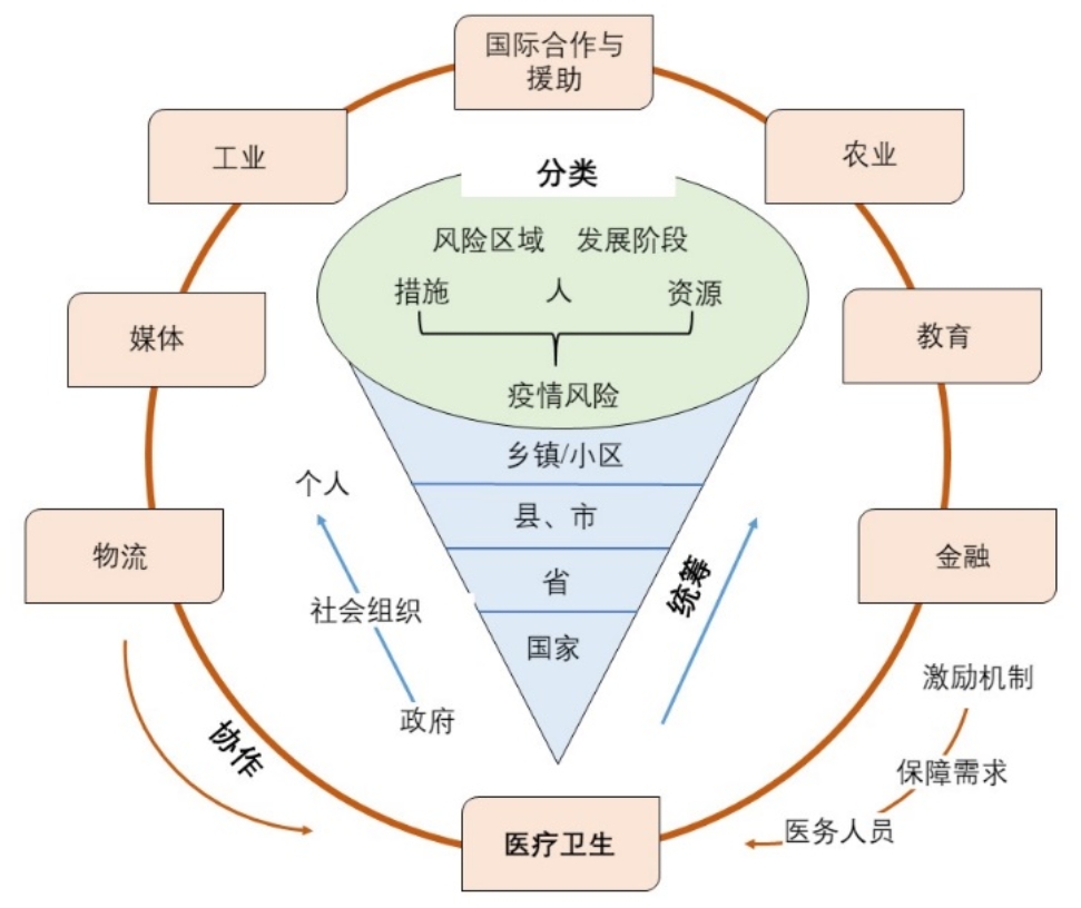 通过统筹、分类和协作(3C)的系统应对方案,中国已经初步遏制了COVID-19在全国范围内的大规模传播。其中,统筹、分类、协作三者并不各自独立,而是相互关联的。例如,分类需要不同政府机构在不同行政级别之间进行有效沟通、协作,这有助于加强政府的统筹管理,政策高效地执行也离不开各部门之间的协作。而普通民众之间的自发协作行为(自下而上)也需要政府的适当统筹指导(自上而下)。因此,系统性的治理方法需要充分考虑不同机构和参与者之间的相互关联和互动。