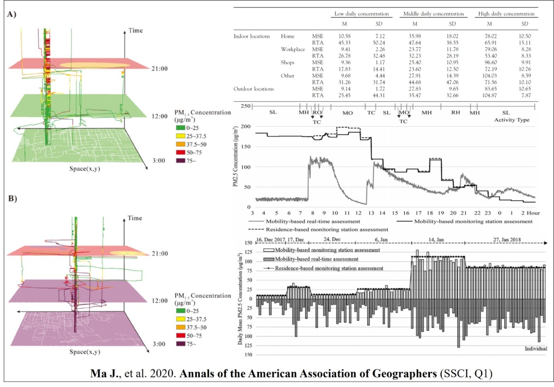 近日,地理学院马静老师及合作者在地理学国际旗舰期刊Annals of the American Association of Geographers以及环境健康领域国际TOP期刊Environment International(5年IF=8.76)正式发表系列研究成果,创新了基于居民日常时空行为轨迹的动态环境污染暴露研究方法与视角,在一定程度上提高了微观个体居民实时环境污染暴露的测度精度。两篇文章马静老师均为第一作者,直播自慰 为第一署名单位。