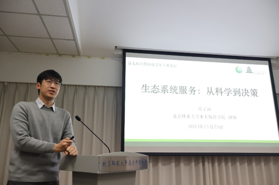 青年学术论坛分别由徐同仁教授和吴秀臣教授主持。河南大学教授谢遵义、中国科学院青藏高原研究所研究员田向军以及北京林业大学教师徐子涵分别进行了题为“遥感大数据技术在生态环境保护与可持续发展中的应用” “EnKF 与 4DVar 在竞争中融合:NLS-DVar”以及“生态系统服务:从科学到决策”的特邀报告,报告内容涉及遥感大数据与生态保护、大数据背景下的资料同化、生态系统服务等方面。与会师生围绕报告内容进行了积极的讨论和充分的交流,现场气氛活跃。
